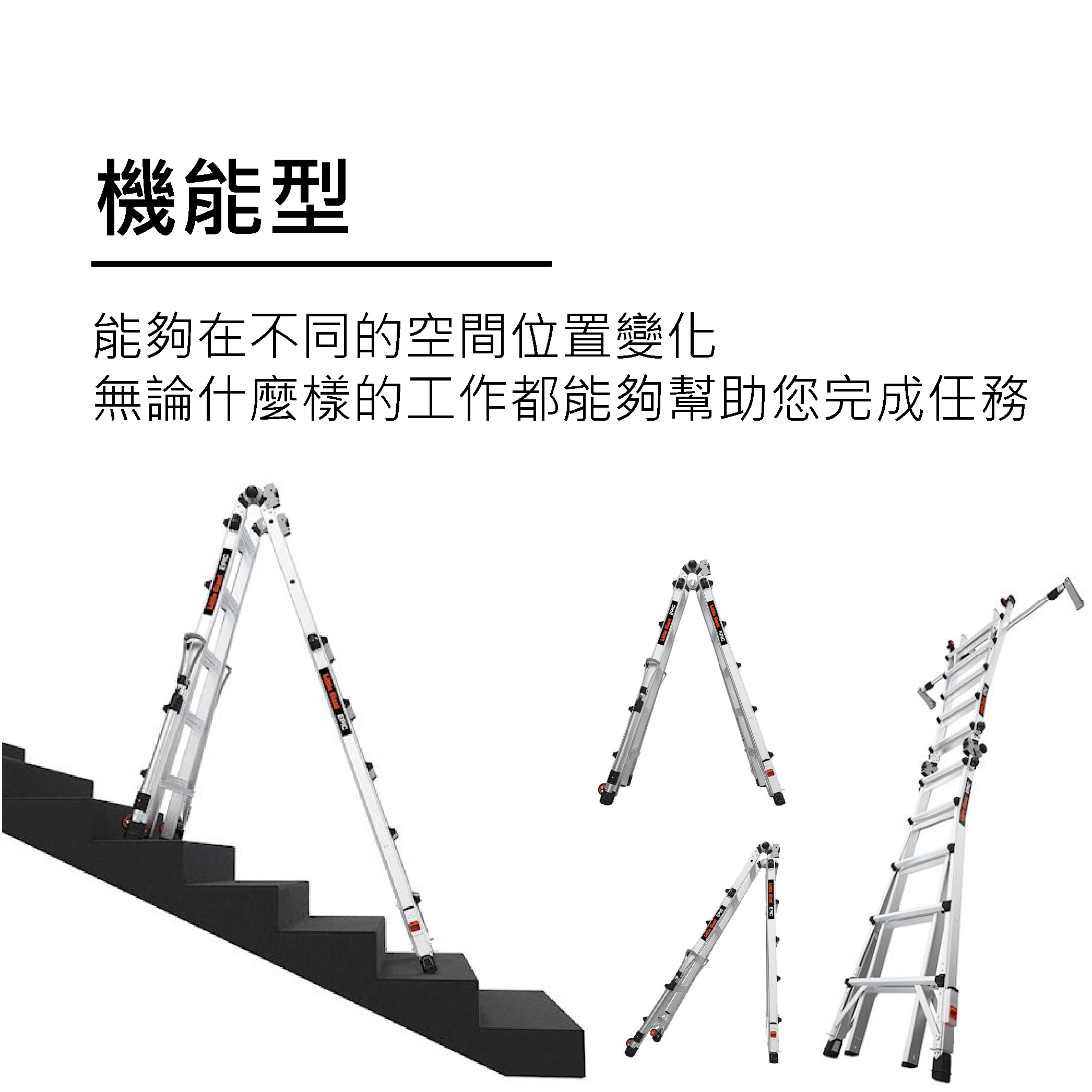 多功能梯含自動腳 4-7呎/5-9呎/6-11呎 符合ANSI IA型 136KG 安全標準,航太全鋁材質製成的多功能工作梯 (含自動腳)