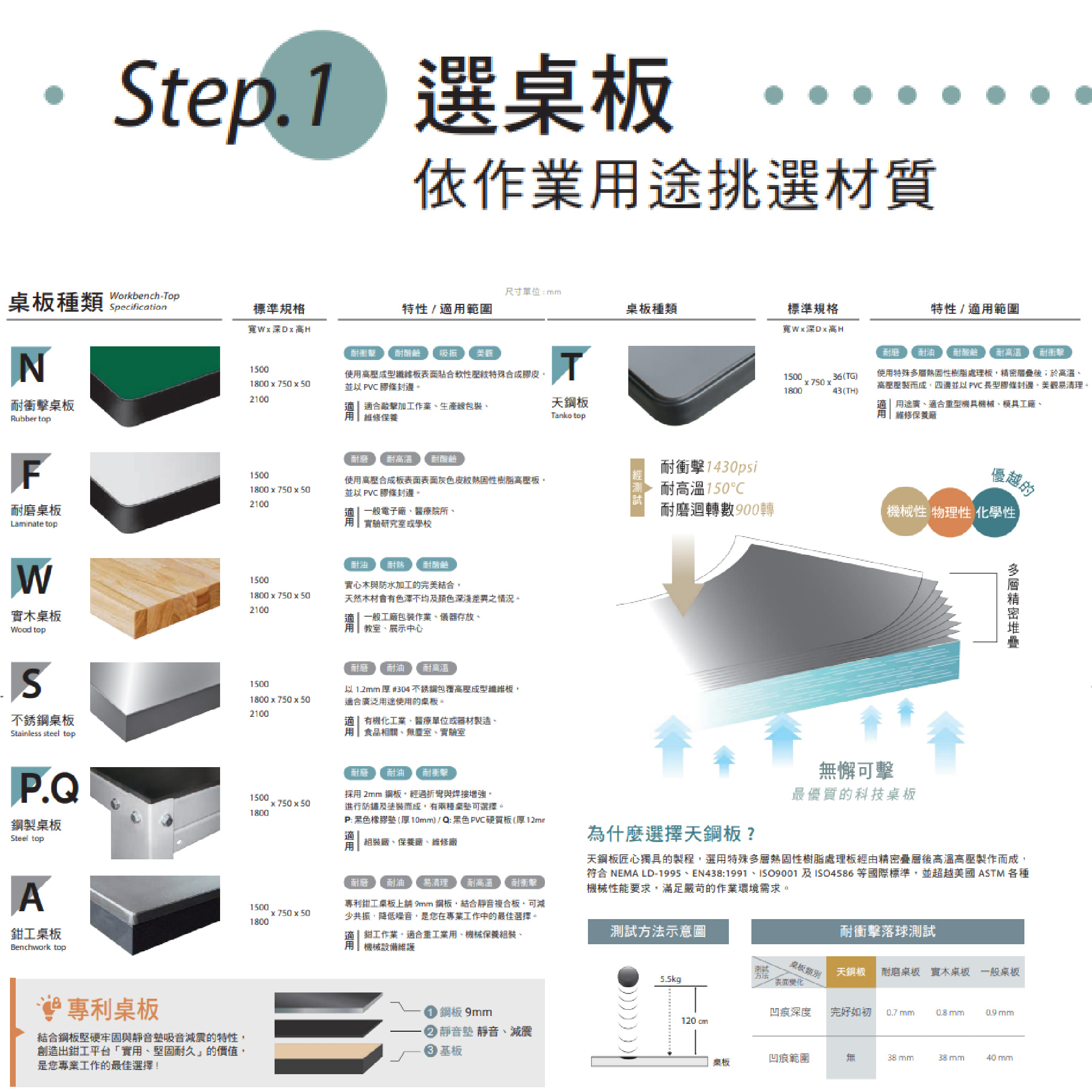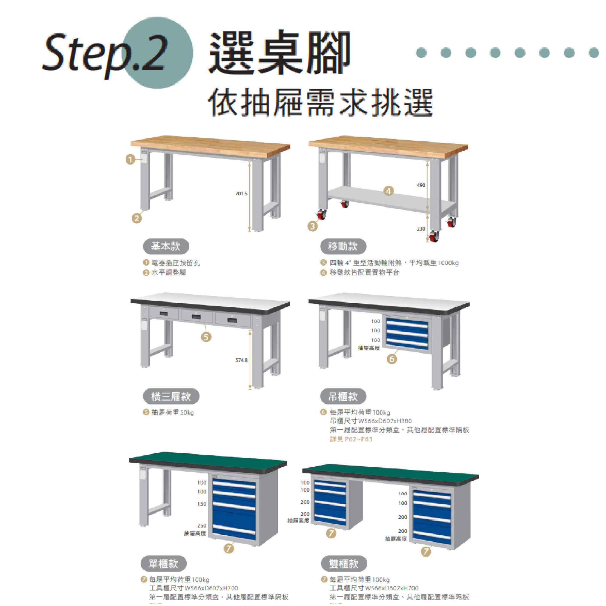 ► 高荷重型桌 桌面平均荷重可達2000kg。