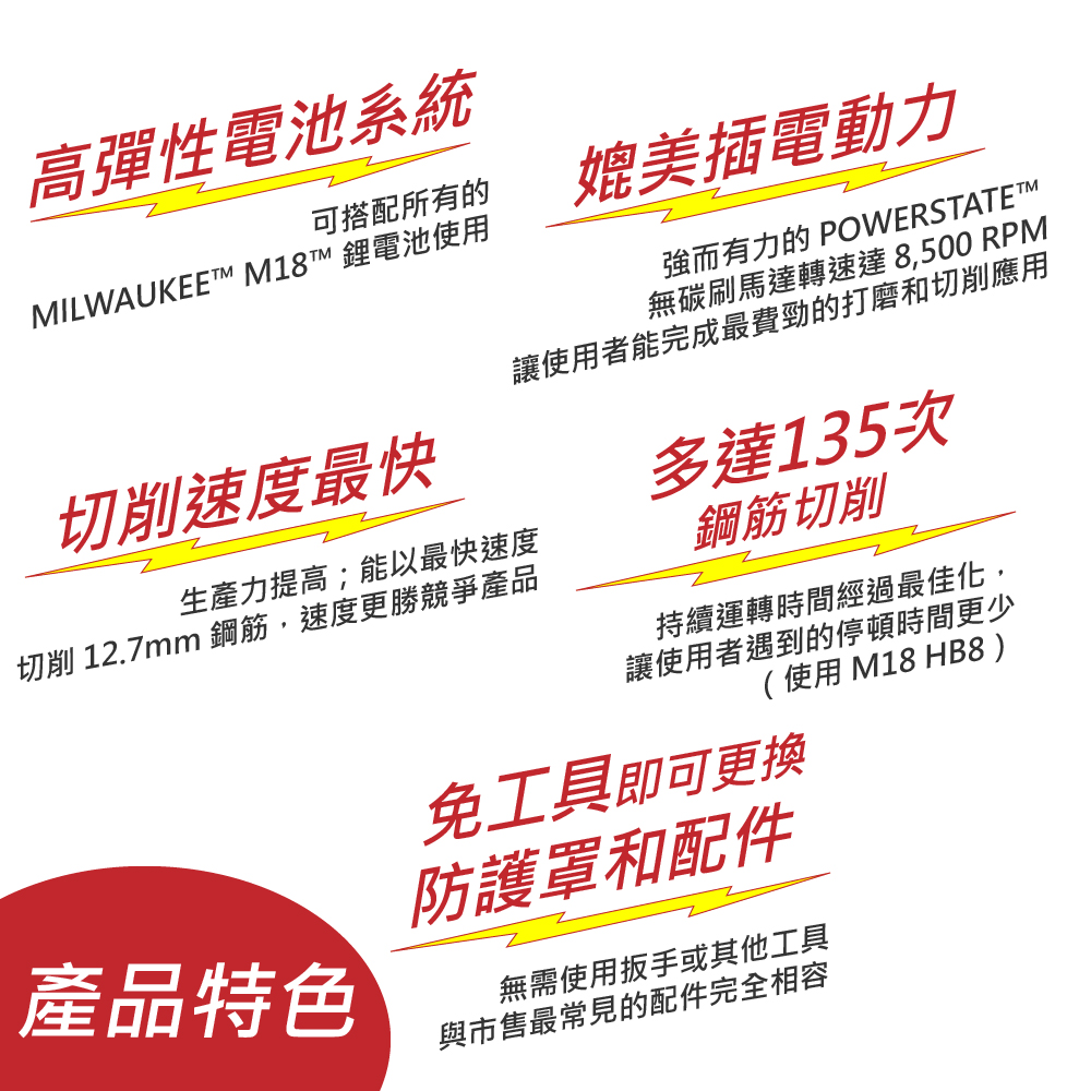 *高彈性電池系統:可搭配所有的MILWAUKEE™ M18™ 鋰電池使用