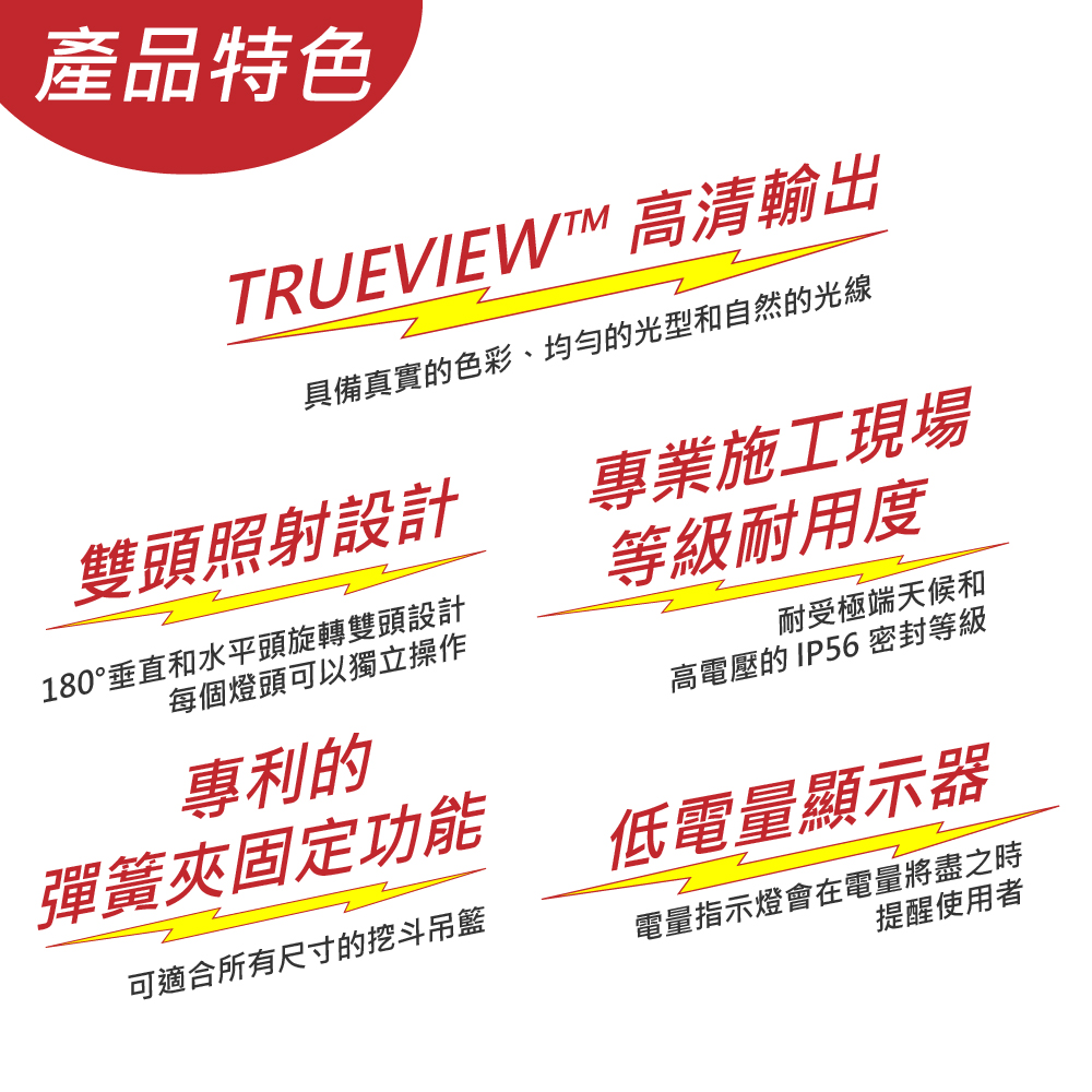 *TRUEVIEW™ 高清輸出,具備真實的色彩、均勻的光型和自然的光線