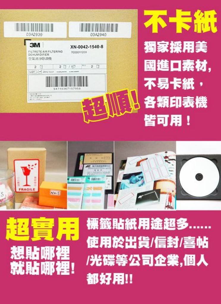 ✯紙張經特殊處理,使用於噴墨印表機可呈現生動色彩,用於雷射印表機可獲得最佳的列印品質,並採用耐溫膠,可承受列印時的瞬間高溫!