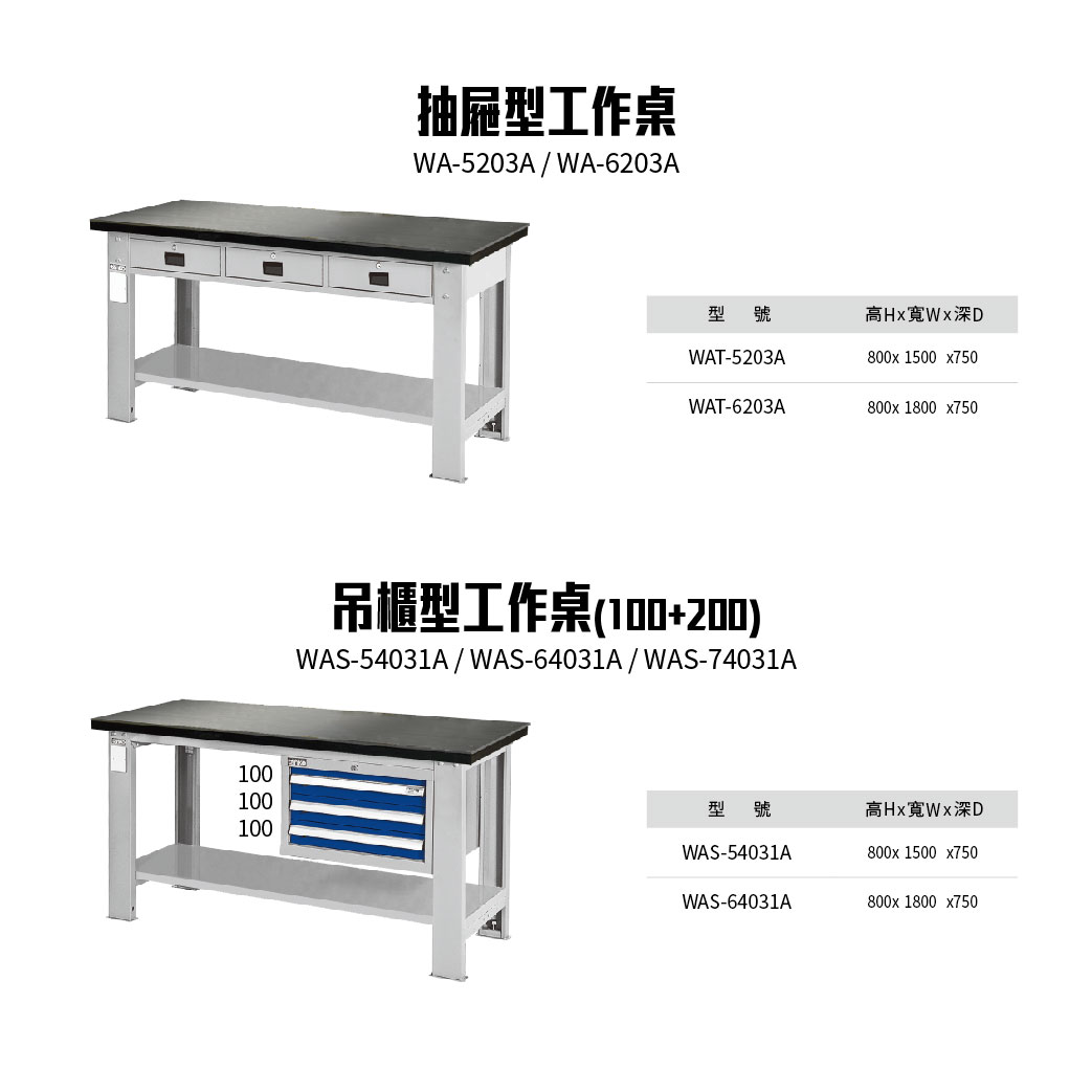 組合式設計,可選擇桌板、箱體、掛板、掛鉤與其他配件,組合成多功能電器工作桌